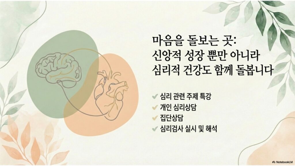 향기나는 교회는 마음의 아픔과 고통을 호소하는 분들이 하나님의 따뜻한 사랑과 심리적 돌봄을 경험하며